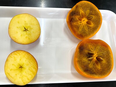 知恵②:種が育つまでは、実が動物に食べられないように、渋い味、不味そうな色や香りの状態で実を大きくします。