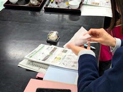 おなかも心も満たされたみなさんは、最後に茶葉の保存法や効能などについて詳しくなりました。印象的だったのは「良いお茶はサッサと飲む」という教えです。どんなに上手に保存しても、味や香りはどうしても衰えていくので、良いものは一番良い状態でいただくというのが良いそうです。効能についても、抽出時間などで栄養分が大きく変化し、「リラックスしたい」ときに飲むお茶や「これから受験勉強がんばるぞ」と飲むお茶は、淹れ方も効能も全然ちがいました。