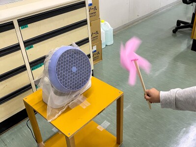 一番人気だったのが、送風機です。会場内に2つ風をずっと出しながら設置していましたが、子どもたちは一番近い場所を奪い合い、ぶつかりそうなぐらい近づけていました。「あれ?回らない (@_@;)?」と、気が付いた子供は大正解です。送風機に近すぎると、どうも風を正面からうまく受けられないみたいです。気づいた子どもは賢く距離をとって、クルクル回るかざぐるまを楽しんでしました!