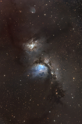 ケフェウス座は天の川の中に位置していて、この領域には分子雲という淡いガス雲が広がっています。7等級の星の光が周辺ガスを照らしている領域をアイリスの青い花にたとえて、この名で呼ばれています。