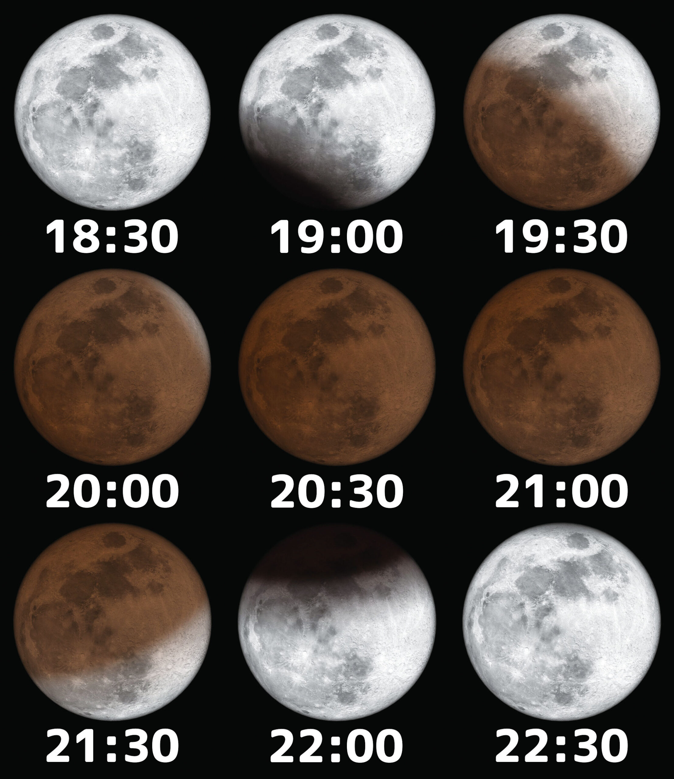 今回の皆既月食は2025年9月以来半年ぶりに観測できるものです。月が欠け始めるのは午後6時49分。もとの満月に戻るのは午後10時17分です。月が東の地平線からのぼってきて間もないうちに月食が始まるため、東の方向の見晴らしがよい場所で観測するのが良いでしょう。(月食の進行は全国共通ですが、月の出の時刻は各地で異なります。)